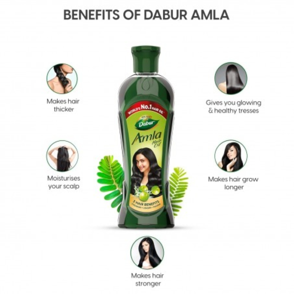 Gives you glowing & silky hair.It enriches your hair, making them strong from inside and beautiful outside Keeps you looking absolutely gorgeous all day long.Dabur Amla Hair Oil combines the goodness of amla fruit (Indian gooseberry) with a blend of vegetable and mineral oils to promote long, healthy hair. Regular application can assist in reducing split ends and minor hair loss.