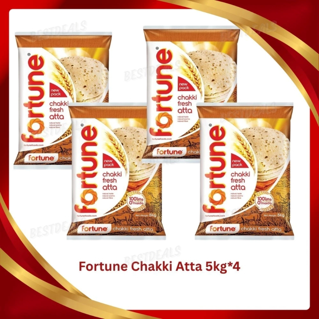 “Fortune Chakki Fresh Atta is made from 100% whole wheat, stone-ground using the traditional chakki method to retain natural fiber and nutrition. Carefully sourced from the finest quality grains, this atta ensures soft, fluffy, and tasty rotis every time. Packed hygienically to preserve freshness and aroma, it contains no maida or added preservatives, making it a healthy choice for your family.