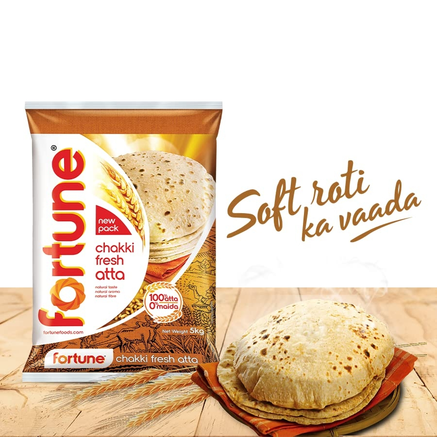 Whether you’re making rotis, parathas, or puris, Fortune Chakki Atta gives you consistent softness and taste. Rich in dietary fiber, it supports digestion and helps maintain overall well-being. Trusted by millions of households across India, Fortune brings you the perfect blend of purity, taste, and nutrition in every pack.