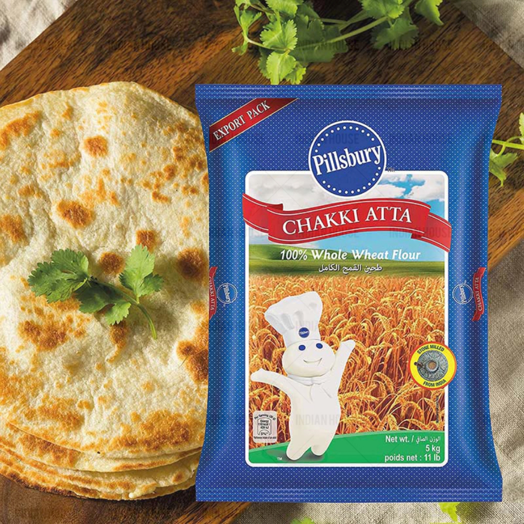“Pillsbury Chakki Fresh Atta – 100 percent whole wheat grain atta with fiber. Pillsbury Chakki Fresh Atta is made of high – quality wheat, locally sourced from India’s finest wheat fields and does not contain maida. Make delicious homemade rotis, paranthas..Highly rated by health-conscious families for its 100% whole wheat nutrition and traditional stone-ground quality.
