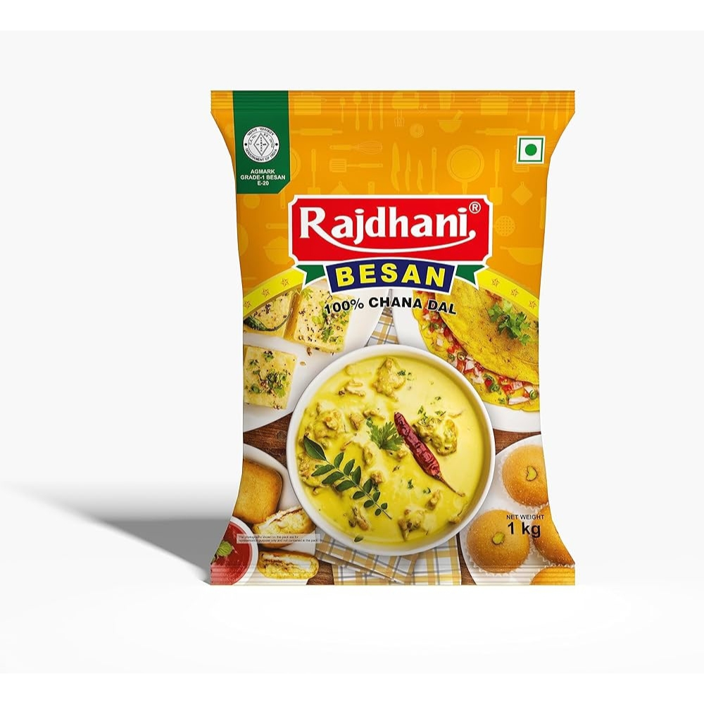 “Bring home the taste of tradition with Rajdhani Besan, a premium-quality gram flour made from 100% pure chana dal. Finely milled and hygienically packed, Rajdhani Besan is your go-to ingredient for preparing a variety of delicious Indian dishes like crispy pakoras, fluffy dhoklas, nutritious chillas, mouth-watering laddoos, and tangy kadhi.
